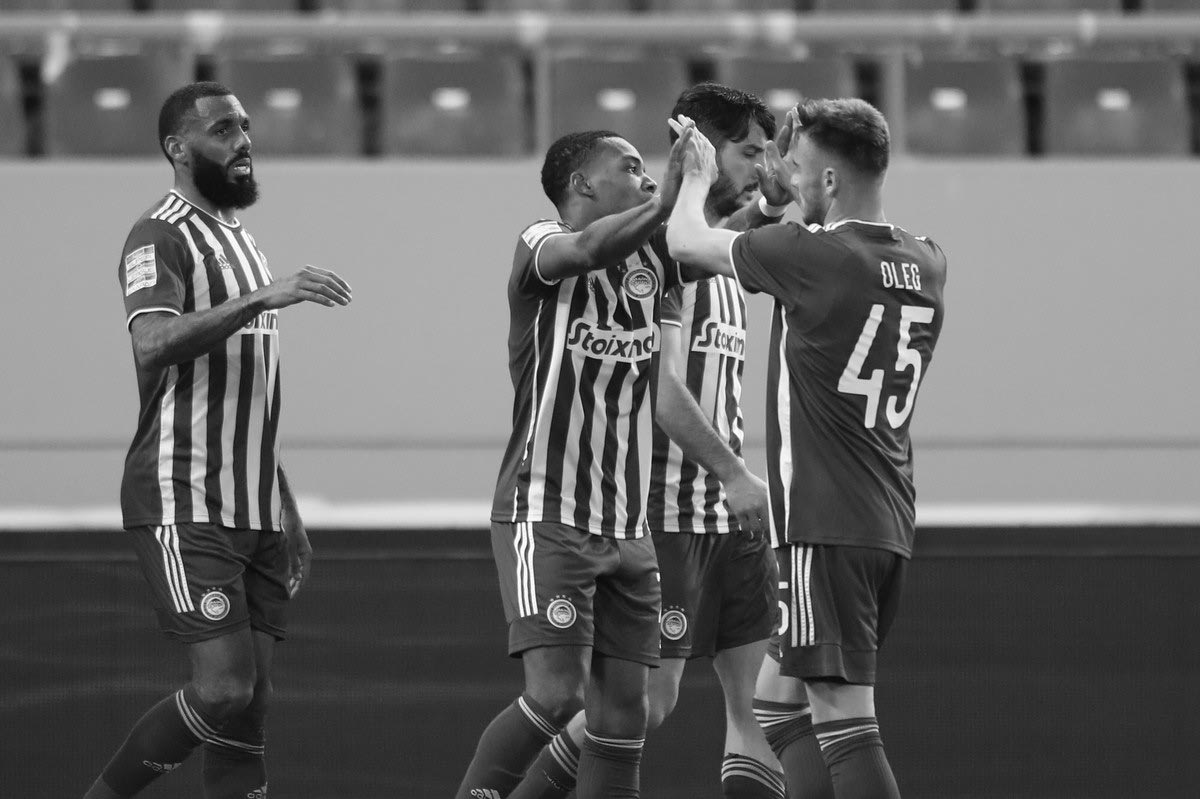 Οι παίκτες του Ολυμπιακού πανηγυρίζουν ένα από τα γκολ που πέτυχαν κόντρα στον Παναιτωλικό