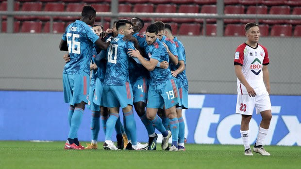 Οι ερυθρόλευκοι ισοφάρισαν στο 45+3′ με κεφαλιά του Γιώργου Μασούρα μετά από μπαλιά του Ανδρέα Μπουχαλάκη και με χατ-τρικ του Γιουσέφ Ελ Αραμπί πανηγύρισαν τη νίκη με 4-1.