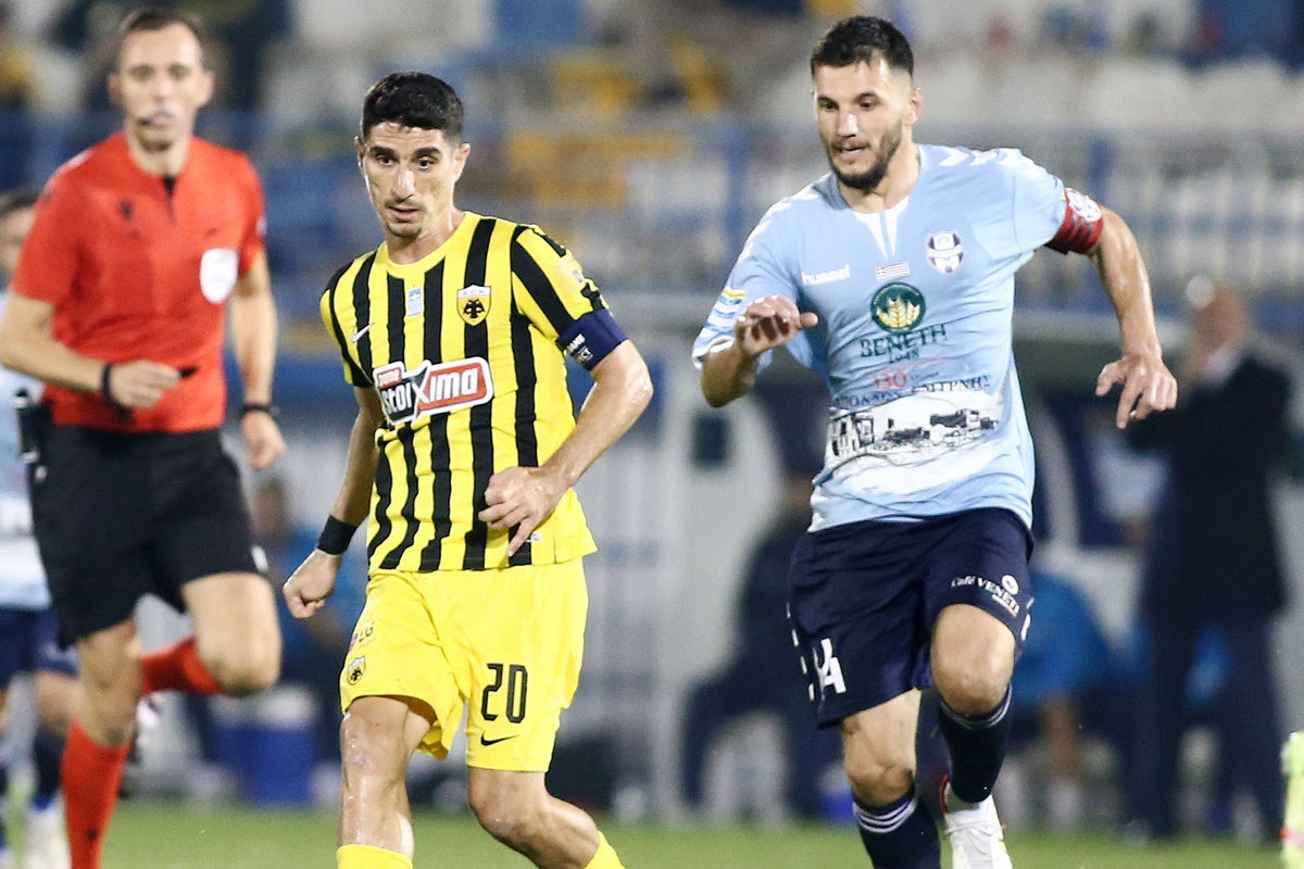 Ο Μάνταλος δίνει μάχη για την μπάλα στο Απόλλων - ΑΕΚ
