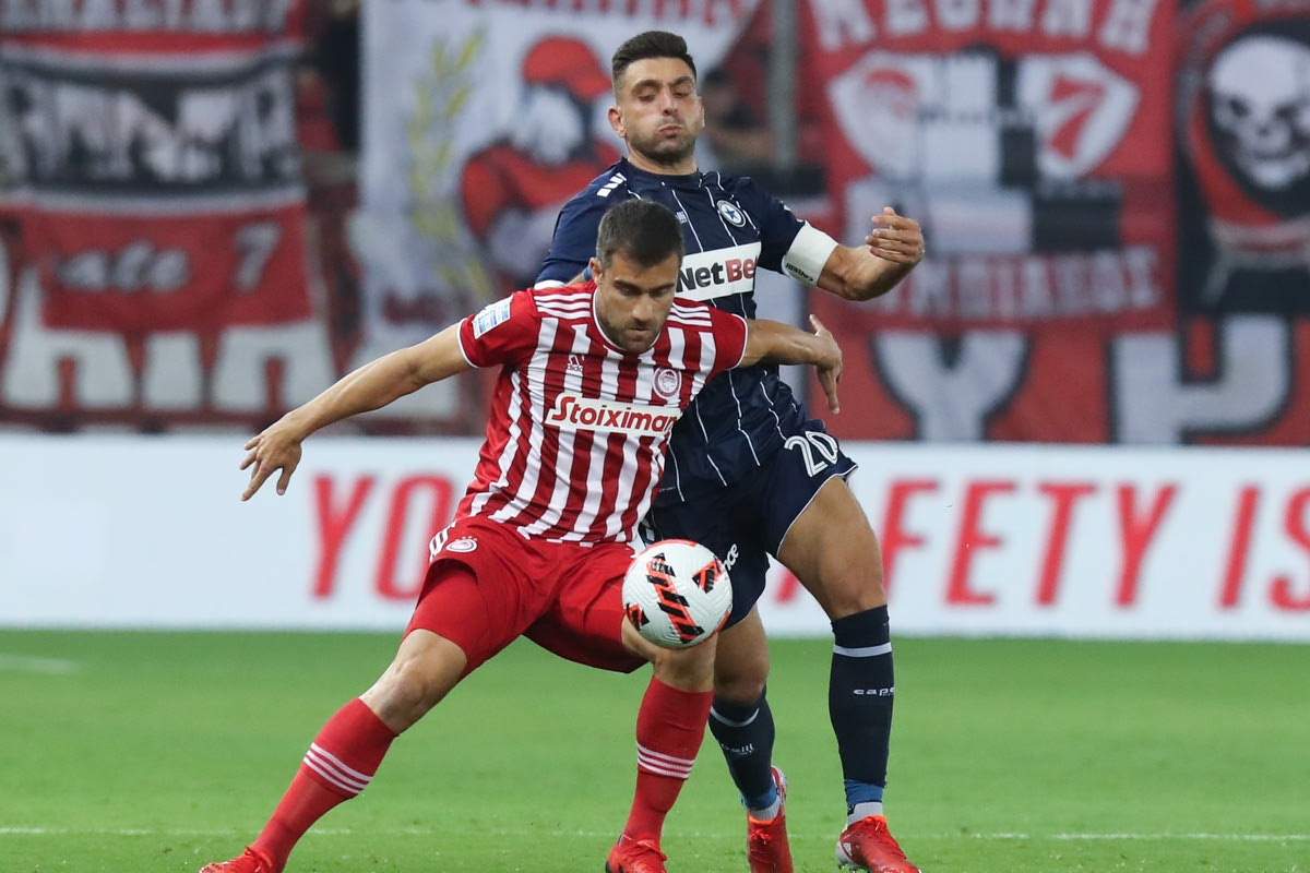 Στιγμιότυπο με τους Κουλούρη και Παπασταθόπουλο στην αναμέτρηση του Ολυμπιακού με το Περιστέρι