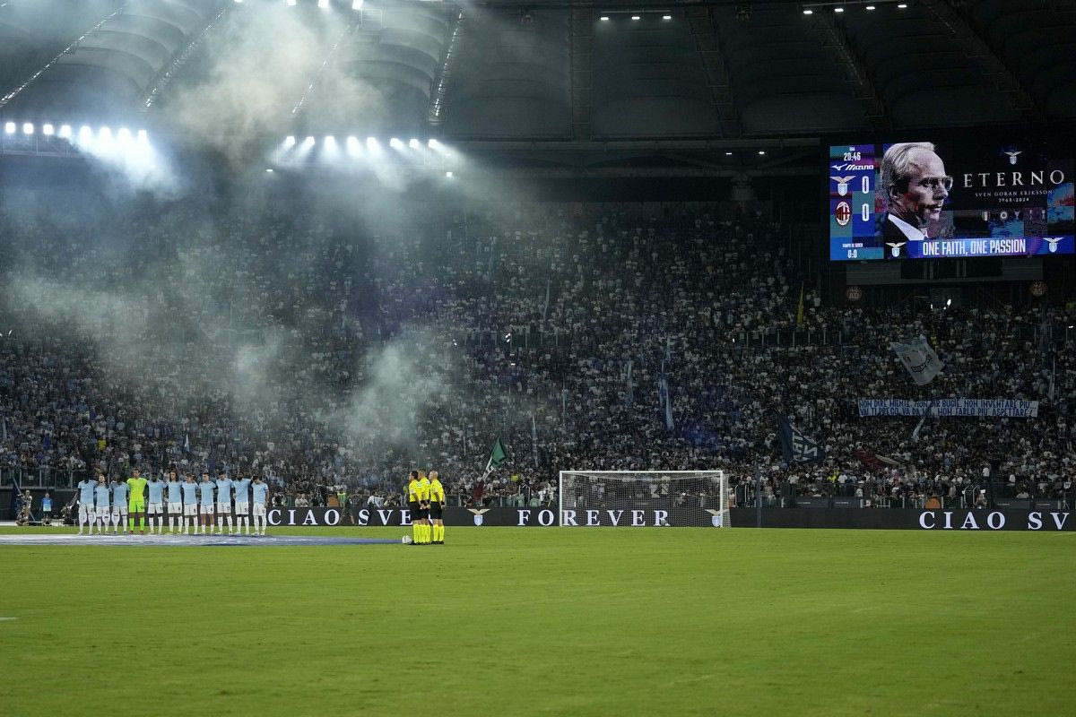 Άκρως συγκινητικές στιγμές εκτυλλίχθηκαν στο Ολίμπικο πριν τη σέντρα του αγώνα της Λάτσιο εναντίον της Μίλαν με τους φίλους των γηπεδούχων να αποχαιρετούν τον Σβεν Γκόραν Έρικσον.
