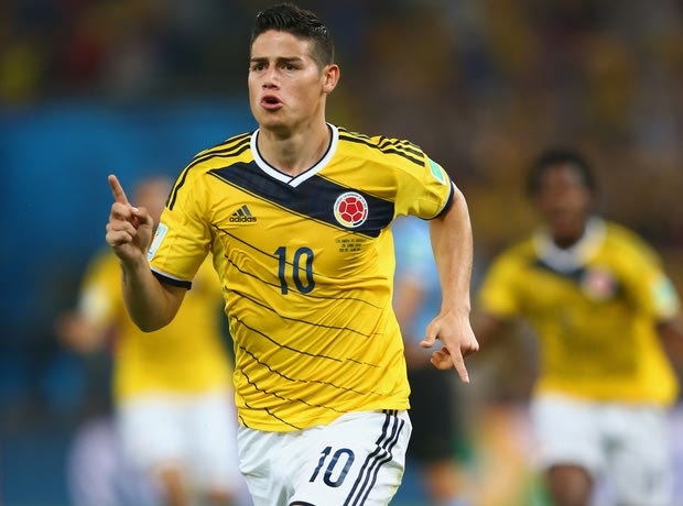 RIO DE JANEIRO, BRAZIL - JUNE 28: James Rodriguez of Colombia celebrates scoring his team's first goal during the 2014 FIFA World Cup Brazil round of 16 match between Colombia and Uruguay at Maracana on June 28, 2014 in Rio de Janeiro, Brazil. (Photo by Jamie Squire/Getty Images)