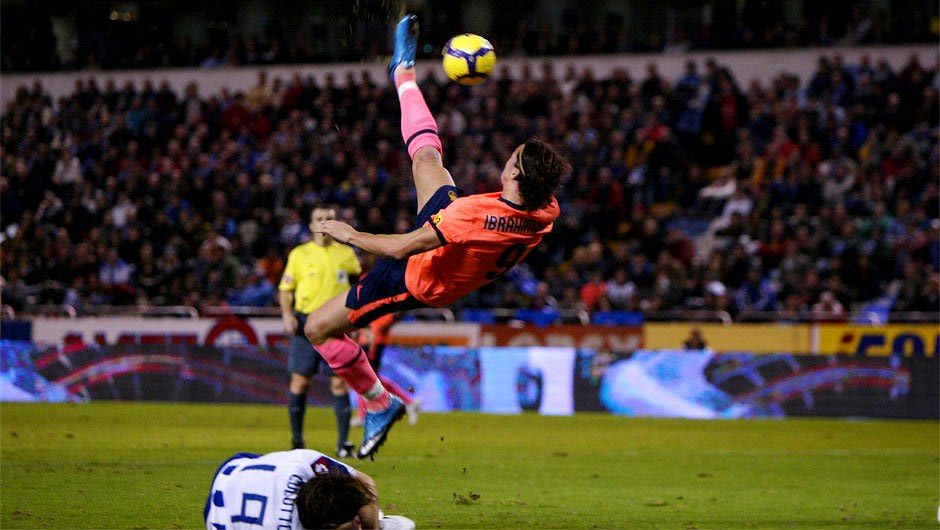 Ο Ιμπραχίμοβιτς σε παλαιότερη εντυπωσιακή προσπάθεια, με τη φανέλα της Μπαρτσελόνα (2009/10)