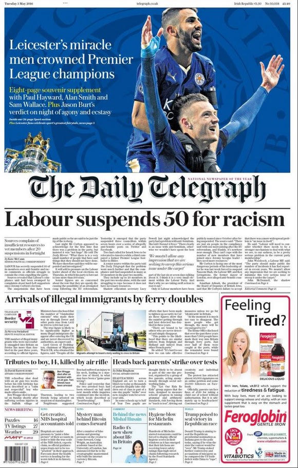Daily Telegraph ➔ Οι θαυματουργοί άνδρες της Λέστερ αναδείχτηκαν πρωταθλητές