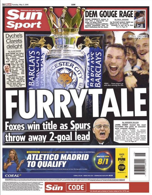 Sun ➔ Γούνινο παραμύθι. Η Λέστερ κατακτάει τον τίτλο καθώς η Τότεναμ πετάξε αβαντάζ δύο τερμάτων