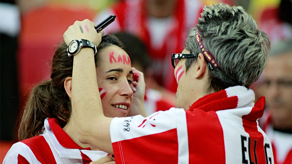 4. Η νεαρή φίλη της Αθλέτικ βάφεται με τα «χρώματα του πολέμου» λίγο πριν τον τελικό.