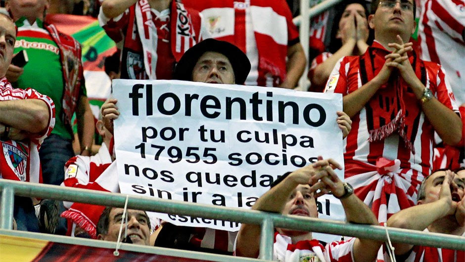 9. «Φλορεντίνο, εξαιτίας σου, 17.955 μέλη της Αθλέτικ δεν θα μπορέσουν να πάνε στον τελικό του Κυπέλλου»! Το μήνυμα σαφές προς τον πρόεδρο της Ρεάλ που αρνήθηκε να παραχωρήσει το «Μπερναμπέου» για την τέλεση του τελικού του Κυπέλλου ανάμεσα σε Αθλέτικ και Μπαρτσελόνα.