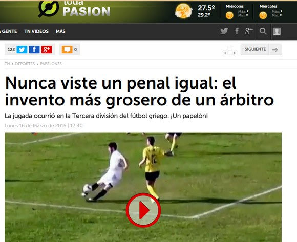Το γύρο κορυφαίων διεθνών ΜΜΕ κάνει η υπόδειξη πέναλτι από το διαιτητή Κωνσταντίνο Κουντουριώτη, στην αναμέτρηση της Καλαμάτας με την Αχαϊκή.
