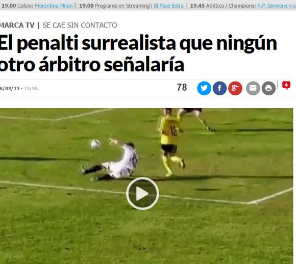 Στην Ισπανία και τη Marca, το βίντεο τιτλοφορείται ως εξής: “Ένα πέναλτι σουρεαλιστικό που κανείς άλλος διαιτητής δεν θα υποδείκνυε”
