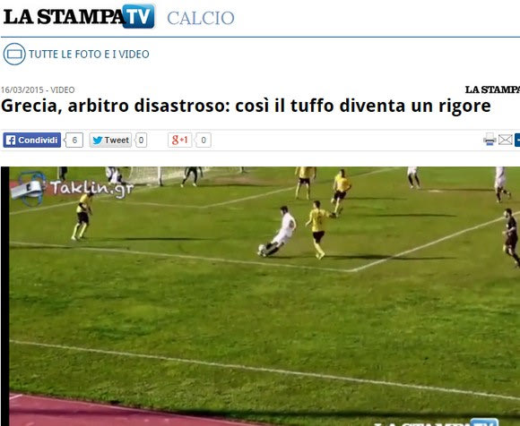 Στην Ιταλία τόσο η Gazzetta dello sport, όσο και η Corriere dello Sport και η Stampa ασχολούνται με την “τραγική απόφαση του καταστροφικού διαιτητή” και το “πως η βουτιά γίνεται πέναλτι”.