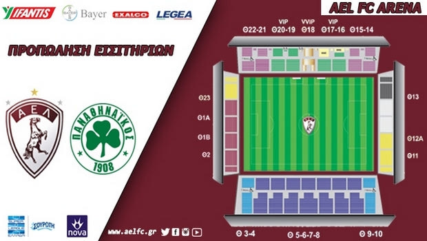Το παιχνίδι της 22ης αγωνιστικής του πρωταθλήματος θα διεξαχθεί στην AEL FC Arena και τα εισιτήρια κυμαίνονται από τα 10 έως τα 60 ευρώ. Αναλυτικά η ανακοίνωση: