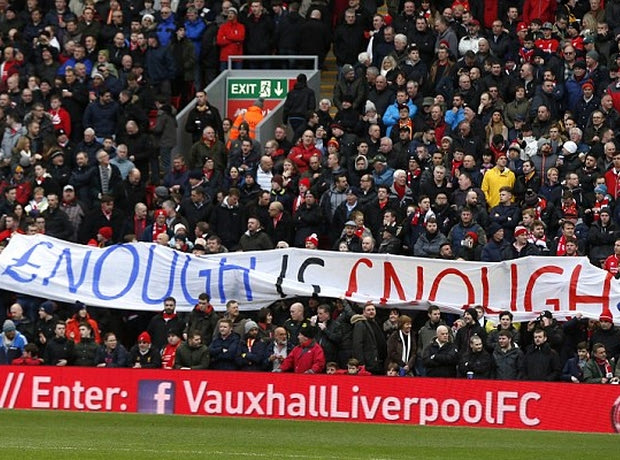 Στο παιχνίδι της Λίβερπουλ με τη Σάντερλαντ στο Anfield, πάρα πολλοί θεατές αποχώρησαν από τις θέσεις τους στο 77ο λεπτό, σε ένδειξη διαμαρτυρίας για το κόστος των εισιτηρίων! Οι τιμές θεωρούνται εξαιρετικά υψηλές και ένας φίλαθλος για να παρίσταται σε όλα τα εντός έδρας παιχνίδια, χρειάζεται να ξοδεύει πολλά χρήματα!