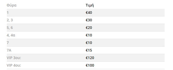 Αναλυτικά, οι τιμές των εισιτηρίων είναι οι εξής: