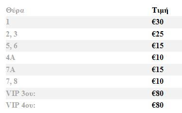 Οι τιμές των εισιτηρίων είναι οι εξής :