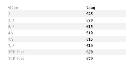 Οι τιμές των εισιτηρίων είναι οι εξής :