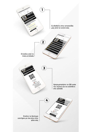 Όσοι φίλαθλοι έχουν προμηθευτεί εισιτήριο μέσω internet και έχουν επιλέξει την παραλαβή «print@home», μπορούν είτε να εκτυπώσουν το εισιτήριό τους σε εκτυπωτή είτε να εισέλθουν στο γήπεδο με το κινητό τους με τη χρήση της νέας λειτουργικότητας QR code.