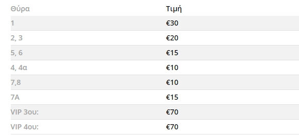 Οι τιμές των εισιτηρίων είναι οι εξής: