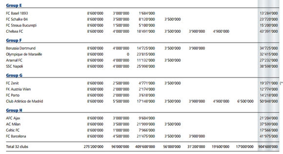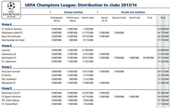 Όσον αφορά τη χώρα μας, ο Ολυμπιακός έβαλε στα ταμεία του το ποσό των 27.406.000 ευρώ! Χρήματα πολλά αν σκεφτούμε την οικονομική κατάσταση που επικρατεί γενικότερα στην Ευρώπη και ολόκληρο τον κόσμο.
