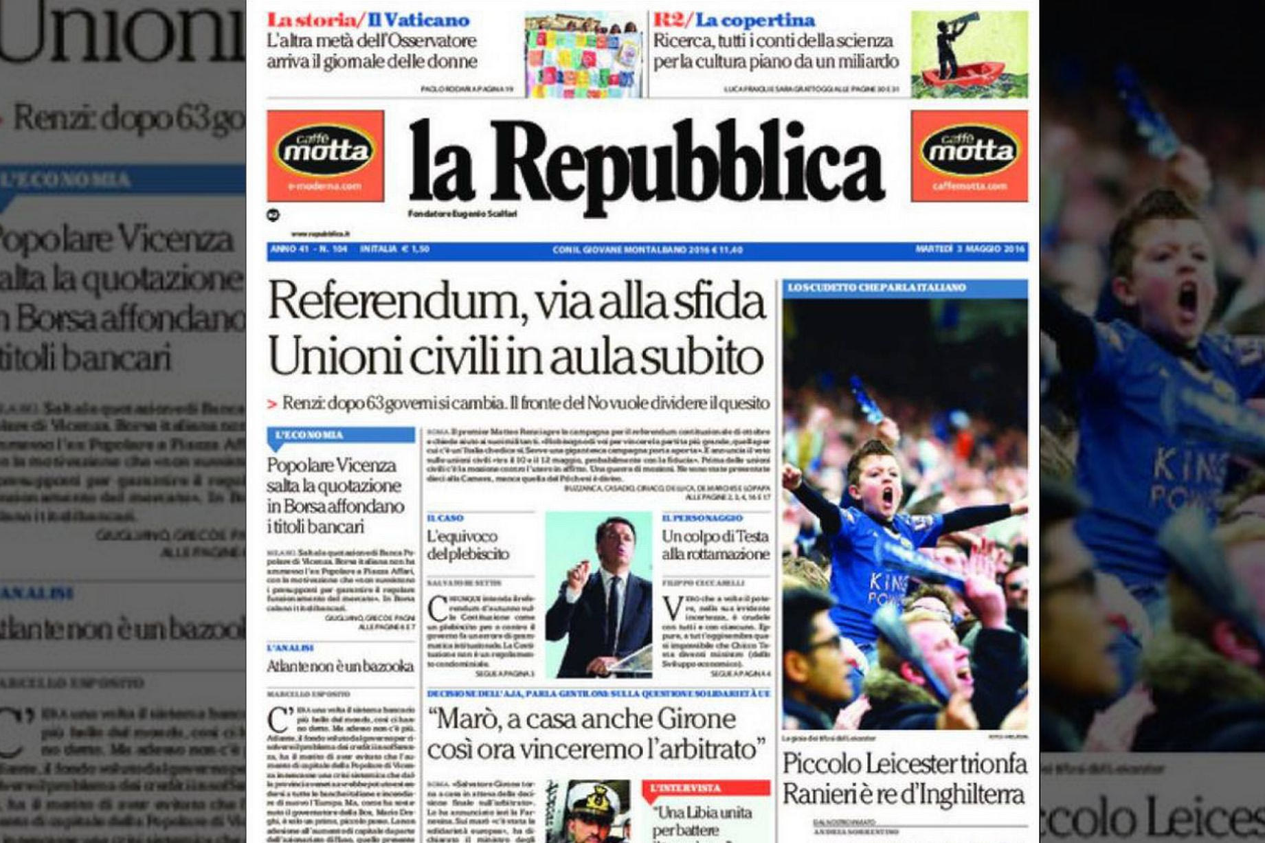 Repubblica ➔ Η μικρή Λέστερ θριαμβεύει, ο Ρανιέρι βασιλιάς της Αγγλίας