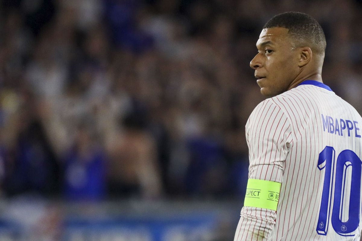France's Kylian Mbappe reacts during the international friendly soccer match between France and Canada at the Matmut Atlantique stadium in Bordeaux, southwestern France, Sunday, June 9, 2024. (AP Photo/Yohan Bonnet)