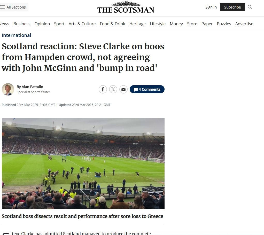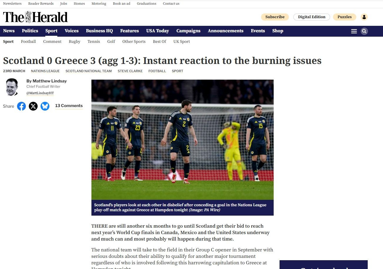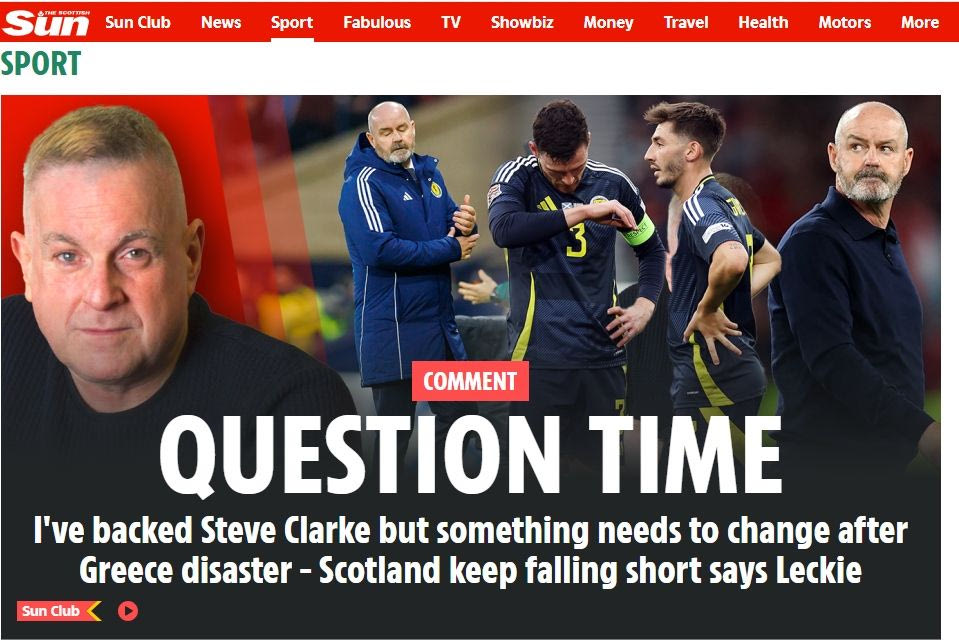 Τα Μέσα της Σκωτίας άσκησαν δριμύτατη κριτική στον Στιβ Κλαρκ μετά τον θρίαμβο της Εθνικής Ελλάδας στη Γλασκώβη με 0-3, δίνοντας τα εύσημα στην ομάδα του Ιβάν Γιοβάνοβιτς.