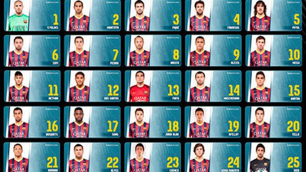 Η Μπαρτσελόνα ανακοίνωσε επίσημα τους αριθμούς στις φανέλες που θα φοράνε οι ποδοσφαιριστές της αυτή τη σεζόν. Είναι χαρακτηριστικό ότι τα νούμερα είναι από το 1 έως το 25, όσοι δηλαδή και οι παίκτες της πρώτης ομάδας.