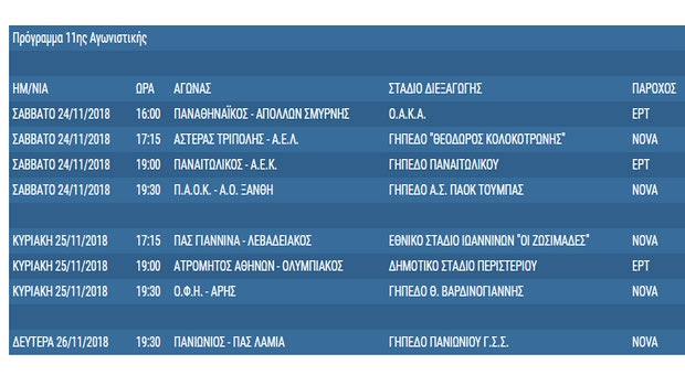 Η διοργανώτρια αρχή έκανε γνωστό το πρόγραμμα της Super League από την 7η έως την 11η αγωνιστική. Σε αυτές τις πέντε “στροφές” είναι προγραμματισμένα σπουδαία ντέρμπι, όπως τα Άρης – ΠΑΟΚ, ΠΑΟΚ – Παναθηναϊκός, Παναθηναϊκός – ΑΕΚ και Ολυμπιακός – Παναθηναϊκός.
