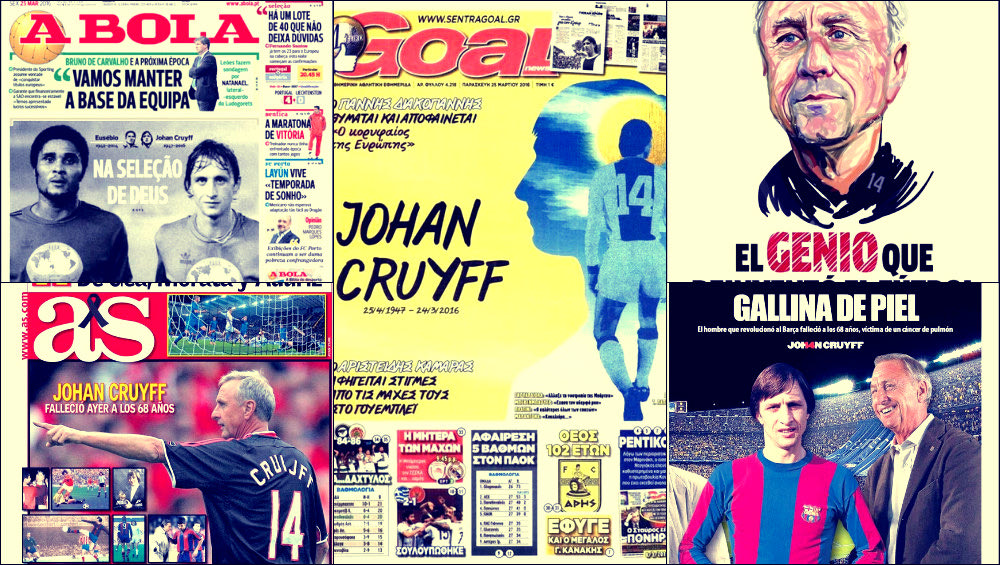 Τα πρωτοσέλιδα για το θάνατο του Κρόιφ
