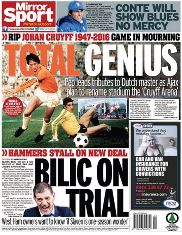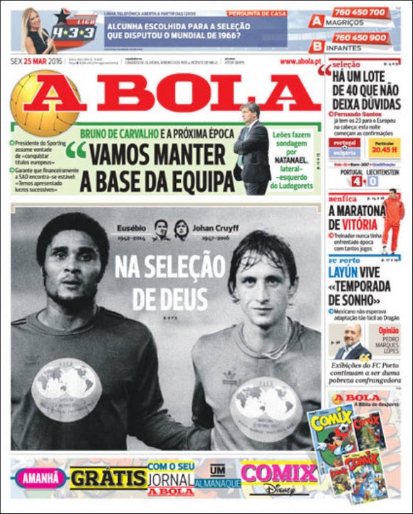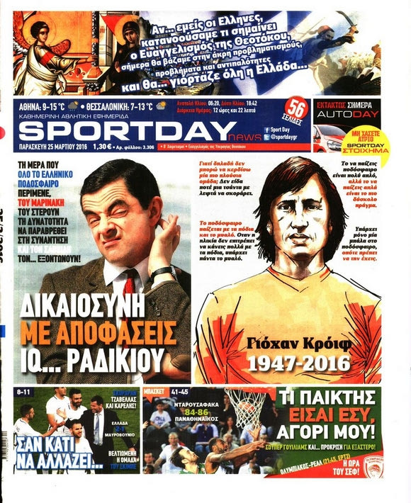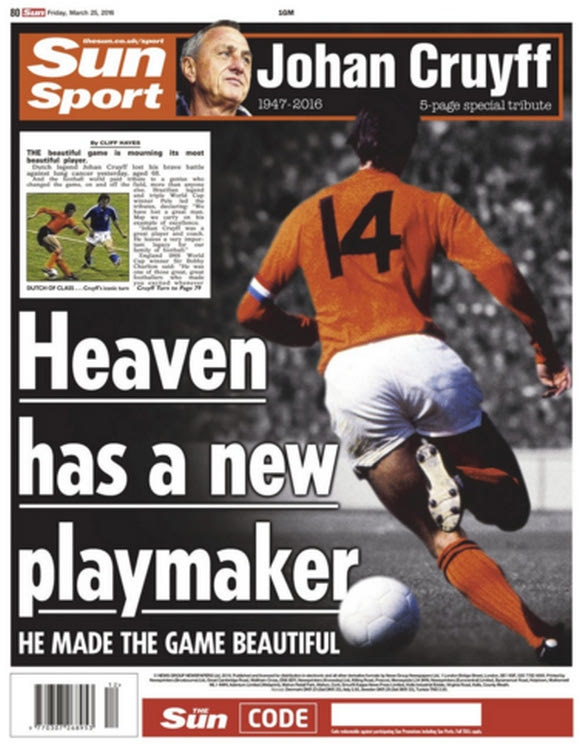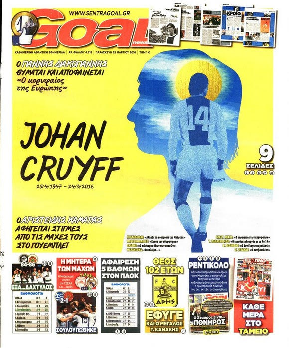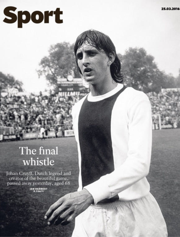 Τα πρωτοσέλιδα για το θάνατο του Κρόιφ