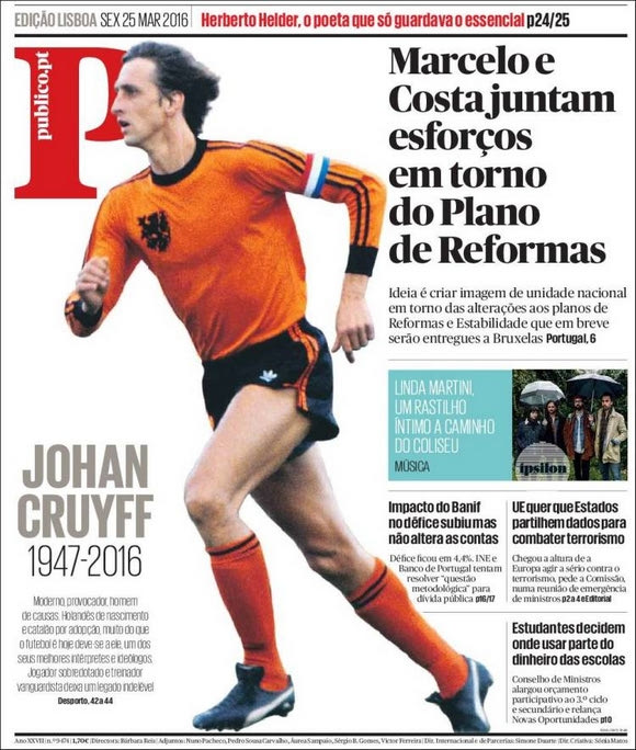 Ο θάνατος του Γιόχαν Κρόιφ κυριαρχεί στα περισσότερα πρωτοσέλιδα εφημερίδων στην Ευρώπη. Δείτε τα σημαντικότερα (φωτογραφίες).