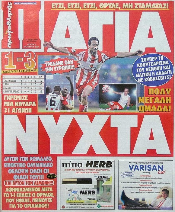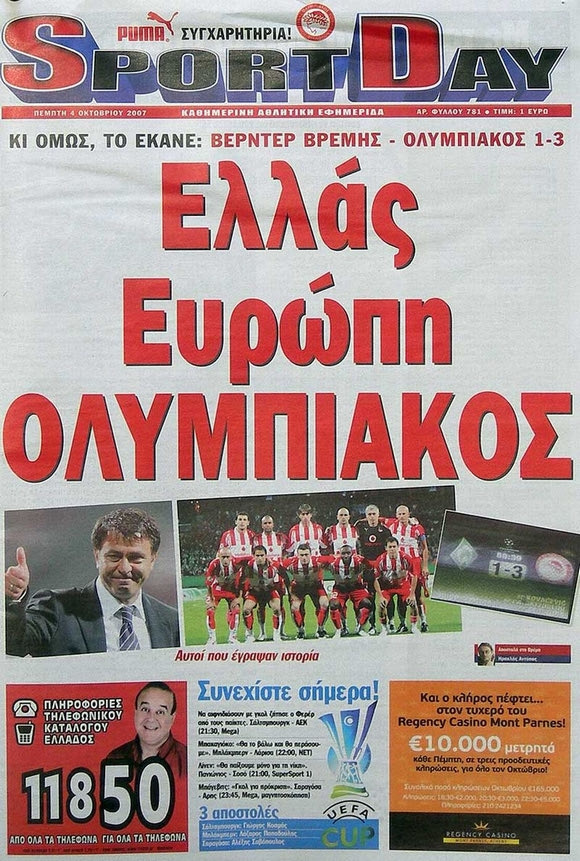 Στις 3/10/2007 ο Ολυμπιακός άλλαξε τη μοίρα του στους εκτός έδρας αγώνες του Τσάμπιονς Λιγκ, μετά τη σπουδαία νίκη με 3-1 επί της Βέρντερ Βρέμης.