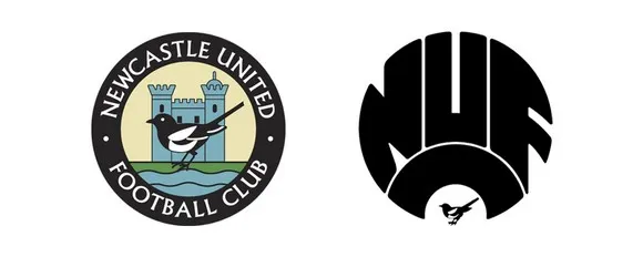 Μία ακόμα ομάδα που χρησιμοποίησε στα πρώτα χρόνια της ιστορίας της το θυρεό της πόλης της. Και μάλιστα, πάνω σε αυτόν βασίστηκε και το μετέπειτα σήμα του συλλόγου. Οι δύο ιππόκαμποι στα πλαϊνά του σήματος υποδηλώνουν το στενό δεσμό της πόλης με τη θάλασσα, ενώ το κάστρο στο πάνω μέρος συμβολίζει το περίφημο κάστρο του Νόρμαν, που δεσπόζει στην περιοχή από το 12ο αιώνα. Το λιοντάρι που ξεπροβάλλει μέσα από το κάστρο συμβολίζει τη σωτηρία και κρατά ένα λάβαρο του Αγίου Γεωργίου, προς τιμήν της αντίστασης της πόλης απέναντι στους Σκωτσέζους τον 14ο αιώνα. Στο κέντρο παρατηρούμε μία ασπίδα ασπρόμαυρου χρώματος, όπως και οι φανέλες της ομάδας, ενώ κάτω υπάρχει ένα γαλάζιο μπάνερ με το όνομα της ομάδας (NEWCASTLE UNITED).