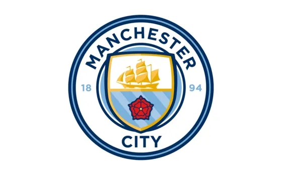 Όπως συνέβη και με τη Μάντσεστερ Γιουνάιτεντ, έτσι και το σήμα της συμπολίτισσάς της, είναι σαφώς επηρεασμένο από το θυρεό του Συμβουλίου της πόλης του Μάντσεστερ. Αυτός άλλωστε χρησιμοποιήθηκε μέχρι το 1964 στις φανέλες της ομάδας. Την επόμενη χρονιά δημιουργήθηκε ένα κυκλικό σήμα, που ανέγραφε το όνομα της ομάδας (MANCHESTER CITY F.C.) και διατηρούσε εντός του, την ίδια ασπίδα με εκείνη του θυρεού, με το καράβι και τις τρεις κίτρινες γραμμές, που συμβόλιζαν τα τρία ποτάμια της πόλης.