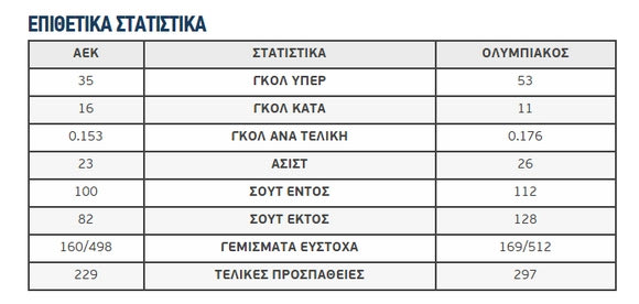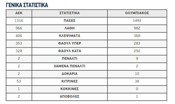Τα στατιστικά ΑΕΚ – Ολυμπιακού
