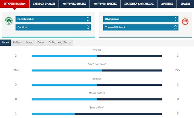 Τα δύο πρώτα tab σας δίνουν τη δυνατότητα να συγκρίνεται τους παίκτες ή τις ομάδες που εσείς επιθυμείτε.