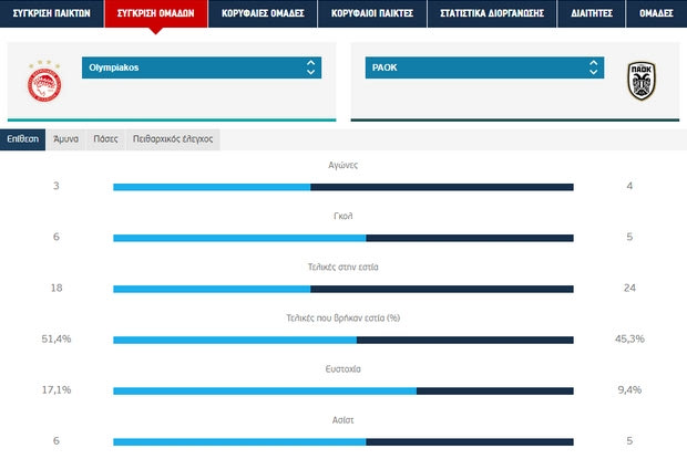 Με τον ίδιο τρόπο, επιλέγετε δύο ομάδες και βλέπετε δίπλα-δίπλα τι έχουν κάνει μέχρι στιγμής στο πρωτάθλημα.
