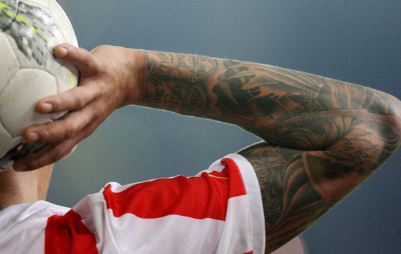 Μια 11άδα αγωνίζεται με τη φανέλα του Ολυμπιακού έχοντας χτυπήσει τατουάζ σε φανερά σημεία. Δείτε τα "ζωγραφισμένα" σώματά των συγκεκριμένων παικτών σε 36 φωτογραφίες.
