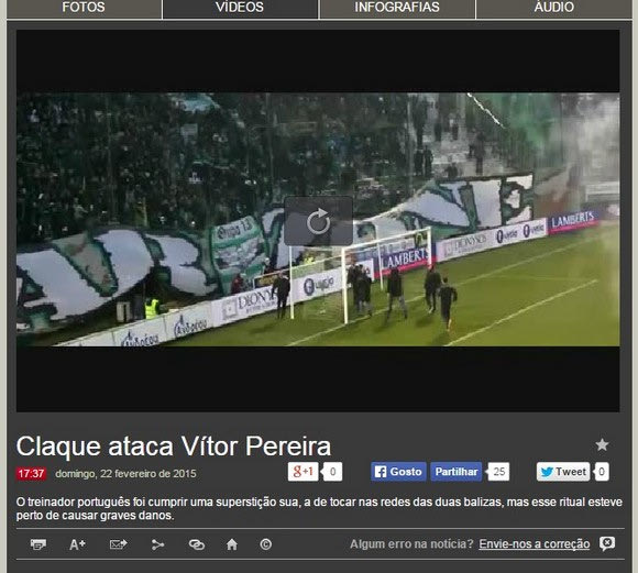 Και οι δημοσιογράφοι της “Record” στέκονται στο συμπατριώτη τους, τεχνικό του Ολυμπιακού. Παραθέτουν βίντεο των επεισοδίων και αναφέρουν “Οπαδός επιτίθεται στον Περέιρα”
