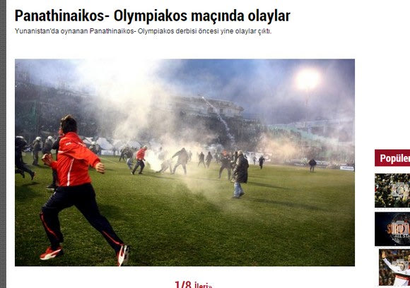 Η τουρκική ιστοσελίδα, futbol arena, παραθέτει φωτορεπορτάζ το τιτλοφορείται, ως εξής: “Επεισόδια πριν το Παναθηναϊκός – Ολυμπιακός”