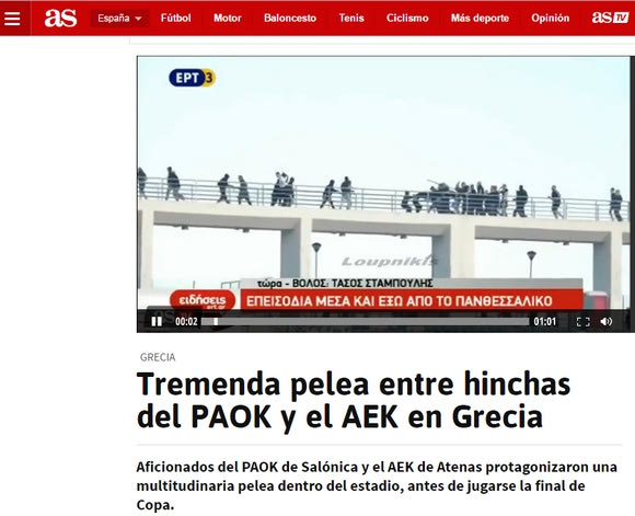 AS (Ισπανία): “Τρομερές μάχες μεταξύ των οπαδών του ΠΑΟΚ και της ΑΕΚ στην Ελλάδα”