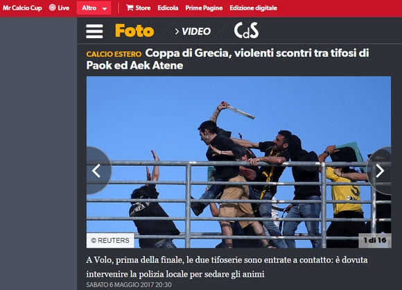 Corriere dello Sport (Ιταλία): “Κύπελλο Ελλάδας, βίαιες συγκρούσεις μεταξύ των οπαδών του ΠΑΟΚ και της ΑΕΚ”