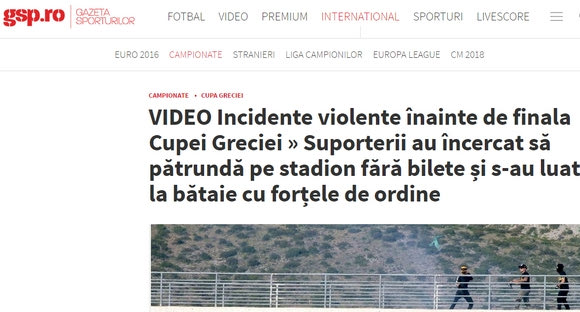 Gazeta Sporturilor (Ρουμανία): “Βίαια επεισόδια στον τελικό Κυπέλλου της Ελλάδας”