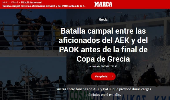 Marca (Ισπανία): “Μάχες μεταξύ οπαδών της ΑΕΚ και του ΠΑΟΚ πριν τον τελικό του Κυπέλλου Ελλάδας”