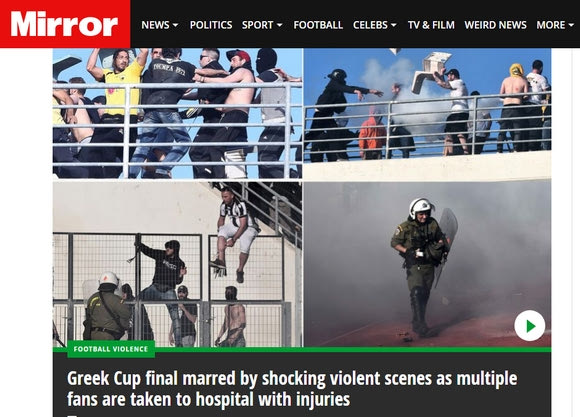 Mirror (Αγγλία): “Ο ελληνικός τελικός επισκιάστηκε από σοκαριστικές σκηνές βίας, με πολλούς οπαδούς να καταλήγουν στο νοσοκομείο ως τραυματισμένοι”
