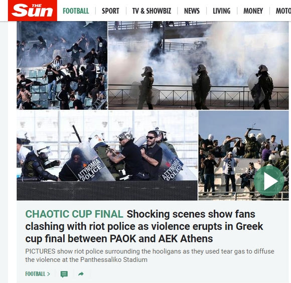 Sun (Αγγλία): “Σοκαριστικές σκηνές που δείχνουν οπαδούς να συγκρούονται με την Αστυνομία”.