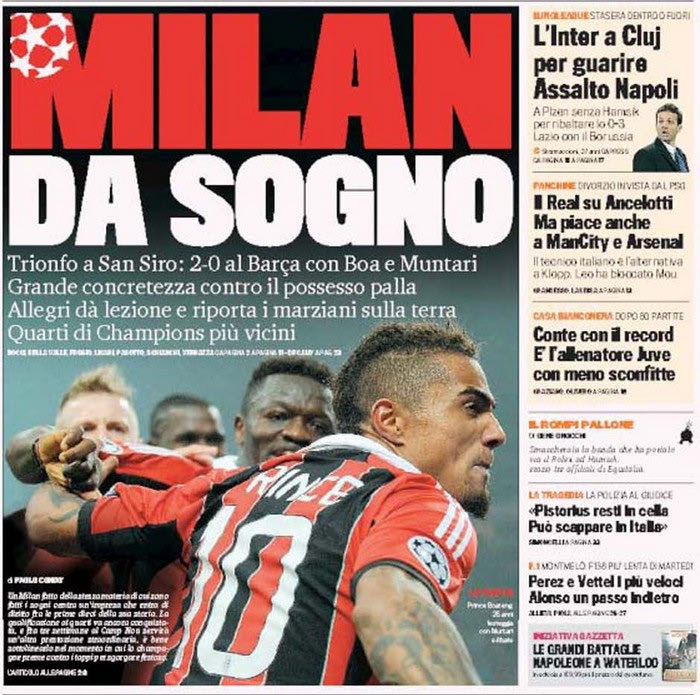 “Όνειρο η Μίλαν” είναι ο τίτλος του πρωτοσέλιδου της ” Gazzetta dello Sport” ενώ οι “Θαυμάσιοι” είναι ο τίτλος της ” Τuttosport“.