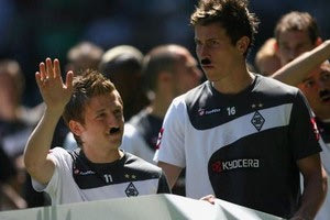 Με ψεύτικα μουστάκια που παρέπεμπαν στον προπονητή τους πανηγύρισαν οι παίκτες της Γκλάντμπαχ