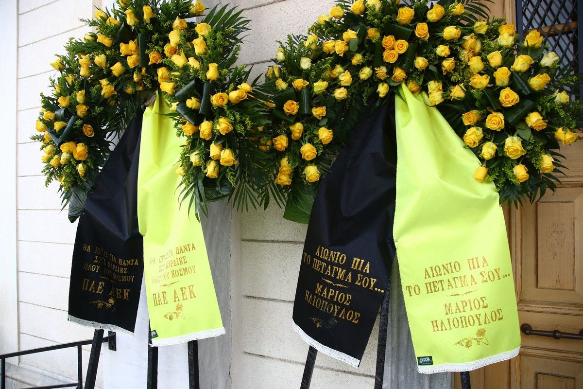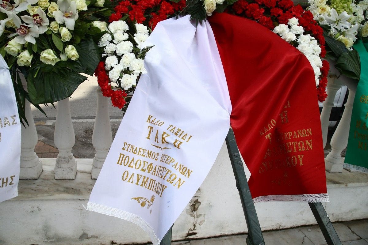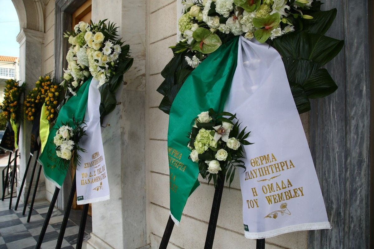 Στεφάνια έστειλαν ο ιστορικός πρόεδρος του Παναθηναϊκού, Γιώργος Βαρδινογιάννης, ο ιδιοκτήτης της πράσινης ΠΑΕ, Γιάννης Αλαφούζος, ο πρώην πρόεδρος της ΠΑΕ Παναθηναϊκός, Νικόλας Πατέρας, ο ισχυρός άνδρας της ΑΕΚ, Μάριος Ηλιόπουλος, η ομάδα Wembley του “τριφυλλιού”, ο Σύνδεσμος Βετεράνων της ΠΑΕ Ολυμπιακός, ο πρόεδρος του Ολυμπιακού Βαγγέλης Μαρινάκης αλλά και το προεδρείο της Super League.