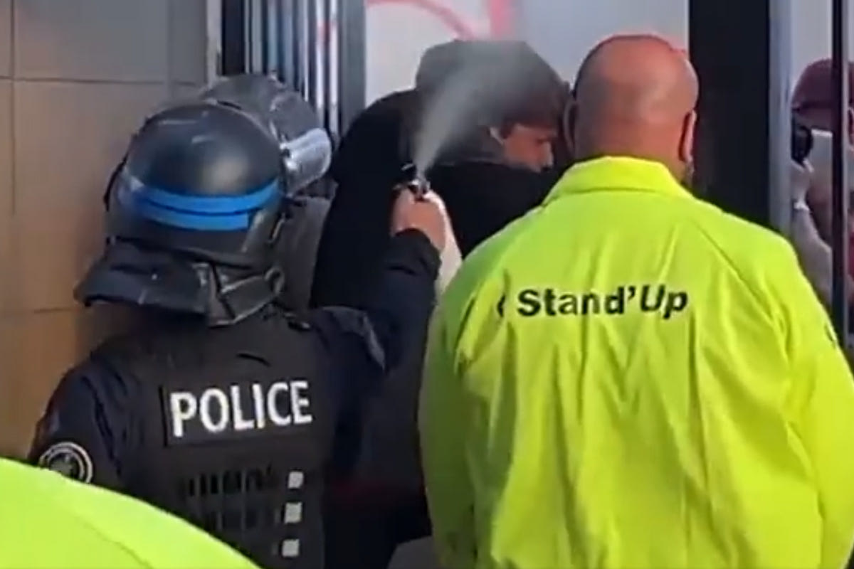 Video που έχει διαρρεύσει στα social media δείχνει έναν φίλαθλο της Λίβερπουλ να εισέρχεται στη θύρα στο Σταντ Ντε Φρανς αφού έχει χτυπήσει το barcode του εισιτηρίου του και να δέχεται χημικά στο πρόσωπο από αστυνομικό