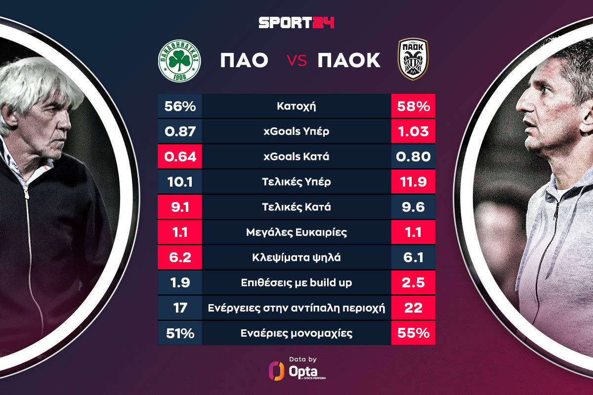 Οι αριθμοί δείχνουν ΠΑΟΚ στον τελικό με τον Παναθηναϊκό, καθρέπτης όμως είναι ο αγωνιστικός χώρος. Ο Πέτρος Παπαμάκαριος χρησιμοποιεί τα στοιχεία της Opta για να αναλύσει τους δύο μονομάχους.